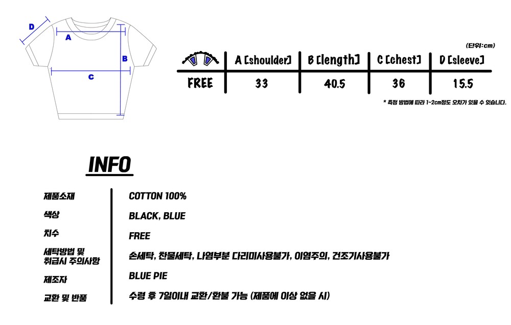 [BLUE PIE] SMALL LOGO CROP T - BLACK