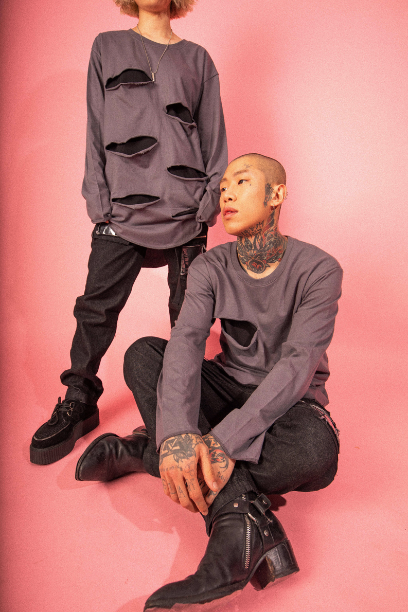 [LTCK] Destroyed Long Sleeve - CHARCOAL