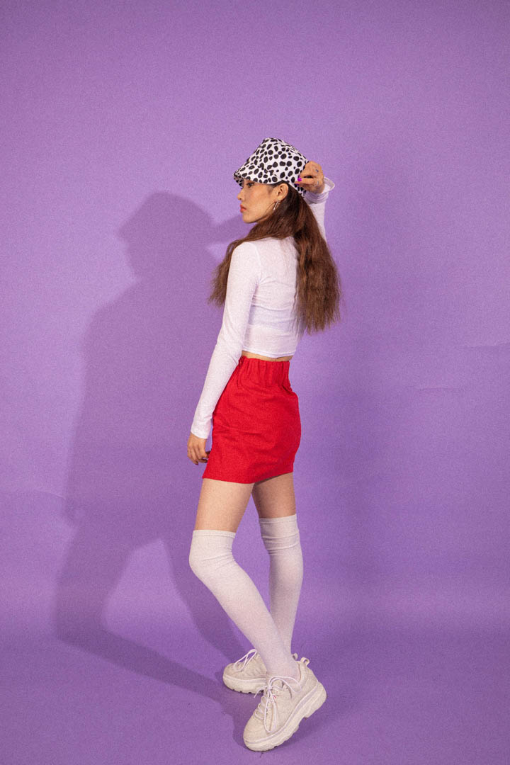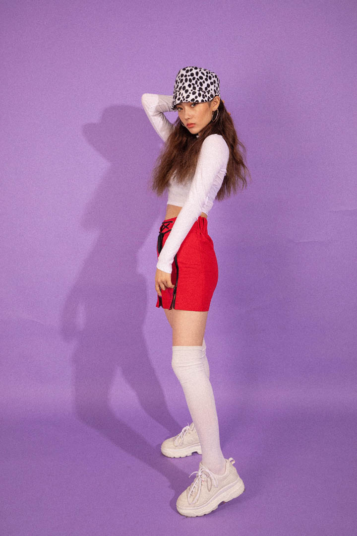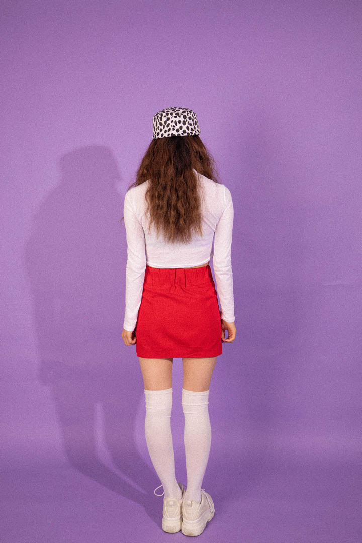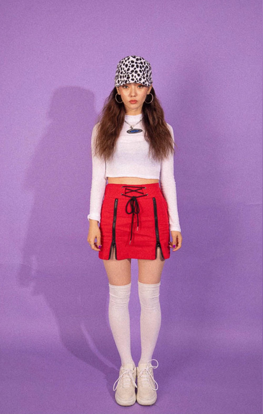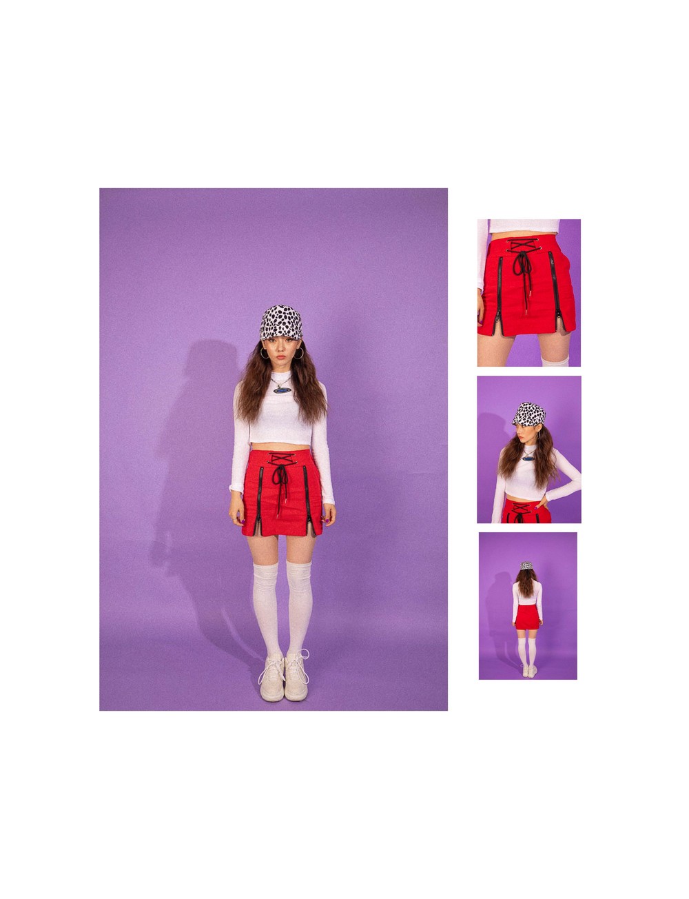 [BLUE PIE] Eyelet Zip Skirt - RED